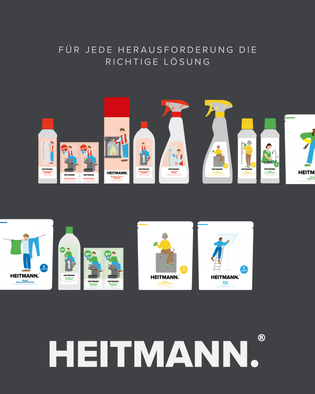Wie übersetzt man eine komplexe Produktwelt in ein klares, modernes Verpackungsdesign? Das Redesign der Marke HEITMANN setzt genau hier an: Ziel war es, die unterschiedlichen Reinigungsprodukte gestalterisch zu ordnen, ihre Anwendung besser verständlich zu machen und die Marke durch visuelle Konsistenz zu stärken.