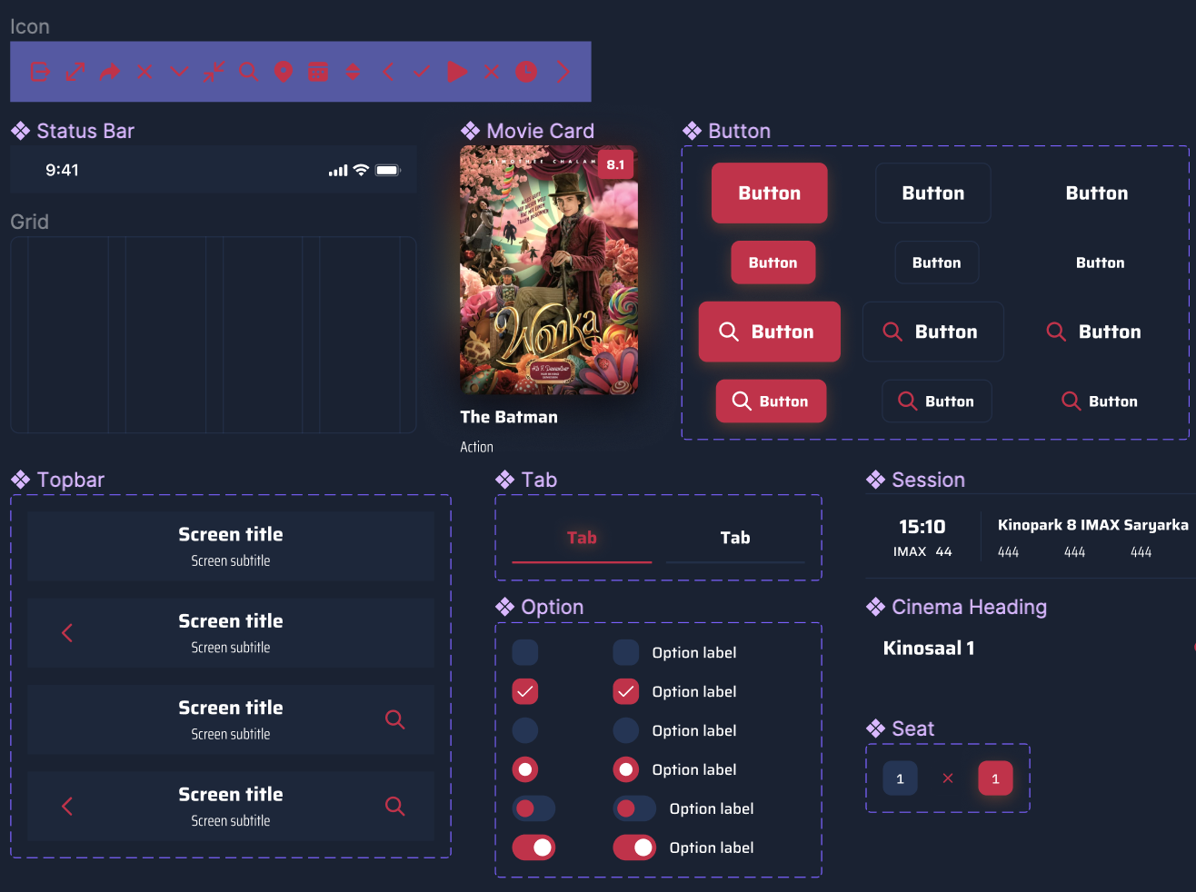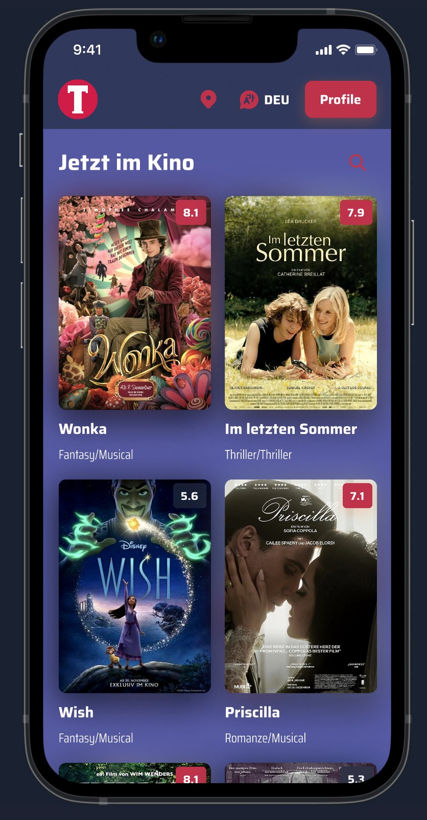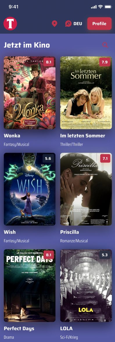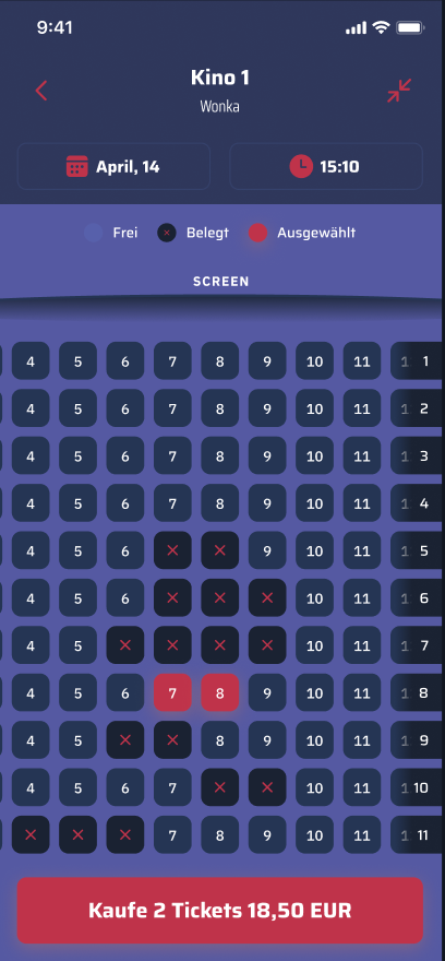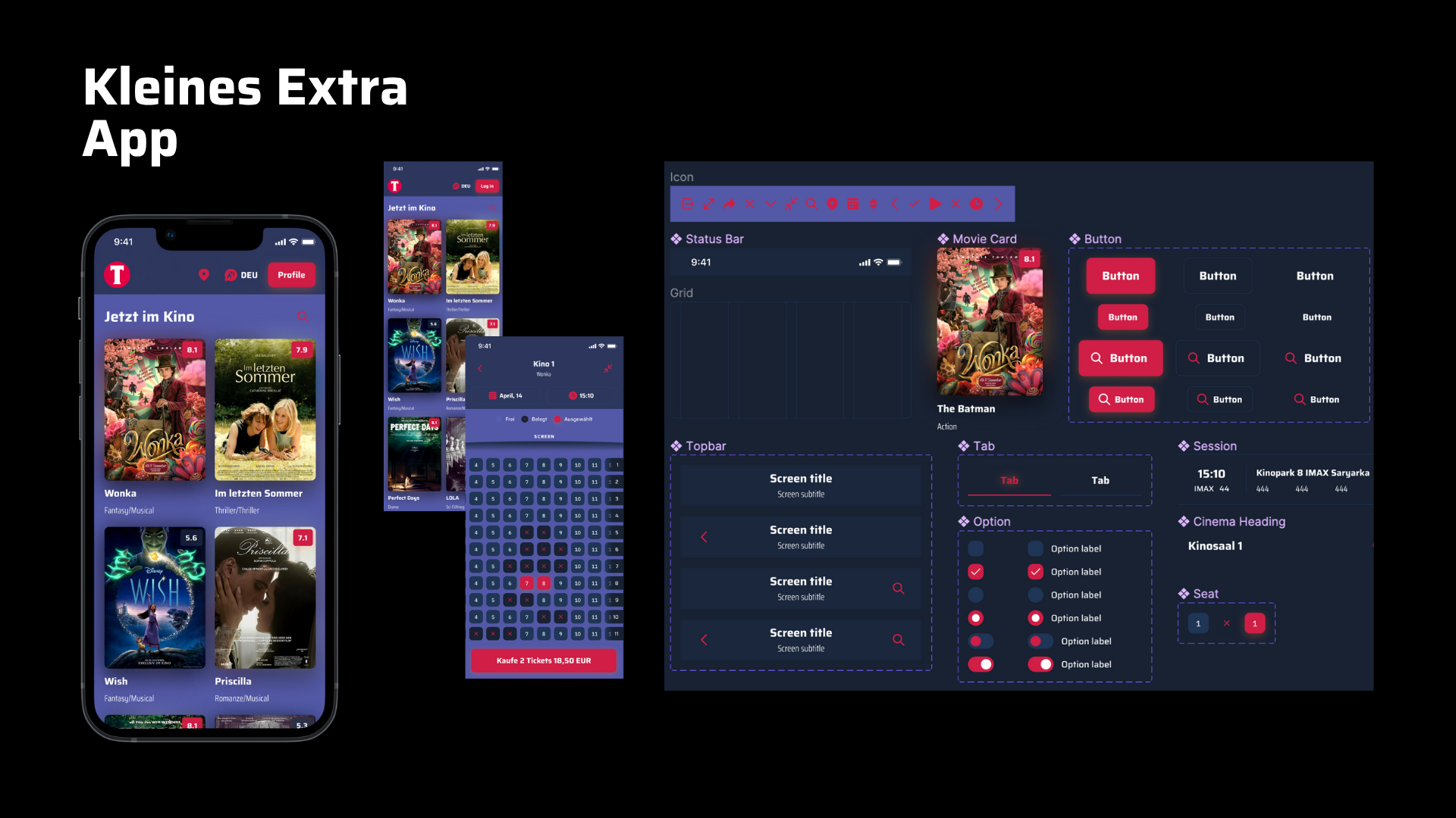 Gestalterisch setzt das Konzept auf klare Farbkontraste, typografische Prägnanz und grafische Elemente wie Lichtkegel und Kreise – inspiriert vom Kinoerlebnis selbst. Die Farbwelt wurde bewusst gewählt: Blau steht für Ruhe und Dunkelheit, Rot für Leidenschaft und Spannung, Schwarz und Weiß sorgen für Lesbarkeit und visuelle Klarheit.